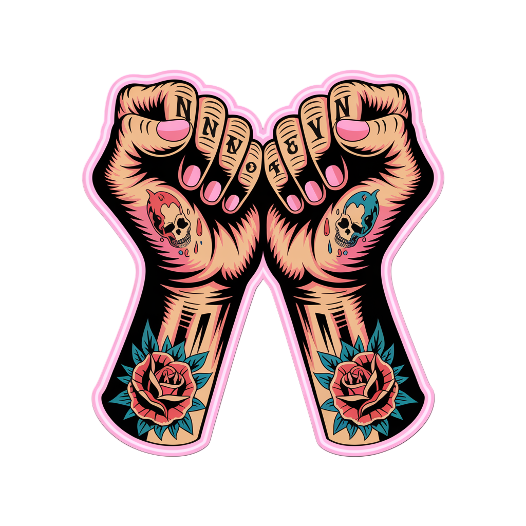 "Riot Grrrl" Style Fists with Skulls and Roses