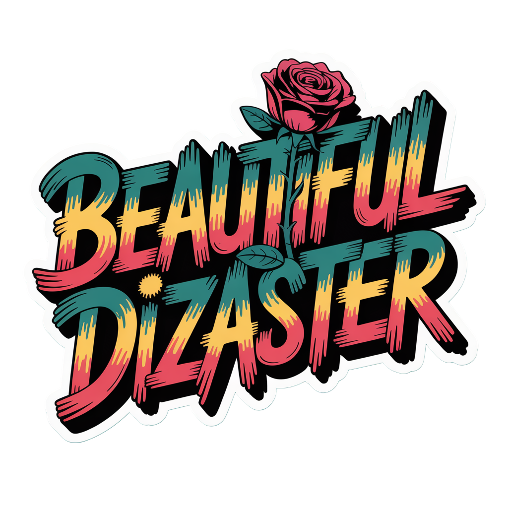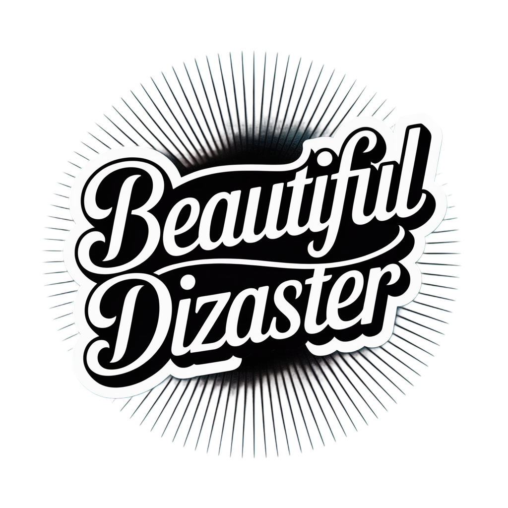 logo, text, Beautiful Dizaster, typography, script, black and white, branding, design, stylized, artistic, modern, unique, graphic, emblem