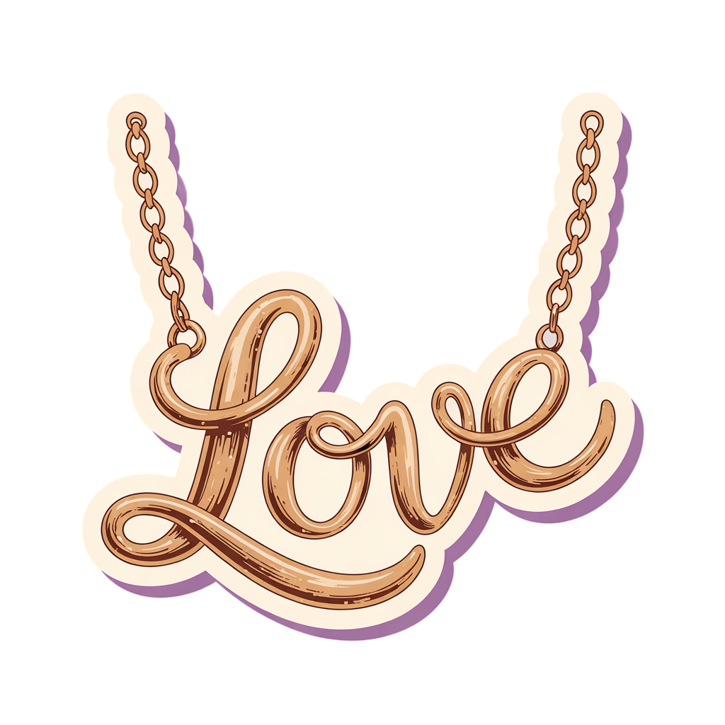 love, necklace, script, lettering, typography, jewelry, illustration, romantic, elegant, gold, brown, fashion, accessory, sticker, graphic, design, charm, pendant, calligraphy, decorative